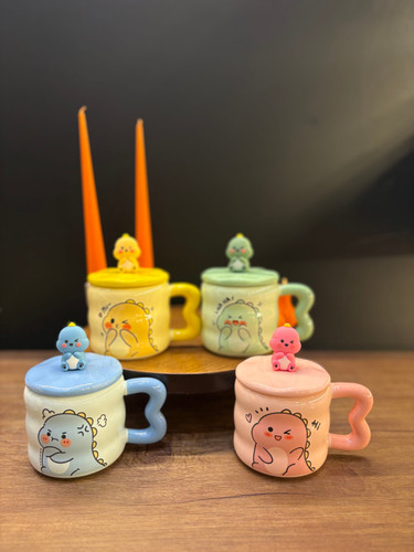 ماگ دایناسور دسته قلبی دایناسور روی درب