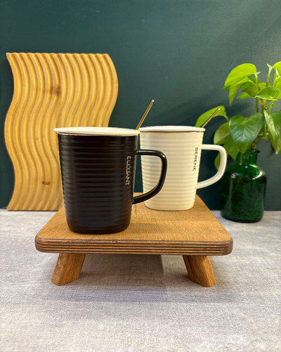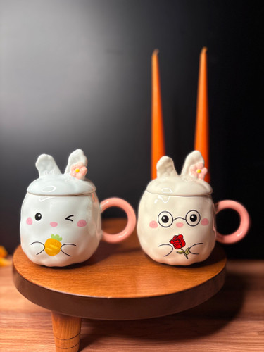 ماگ درب مشکی ایینه پاندا بدنه سفید