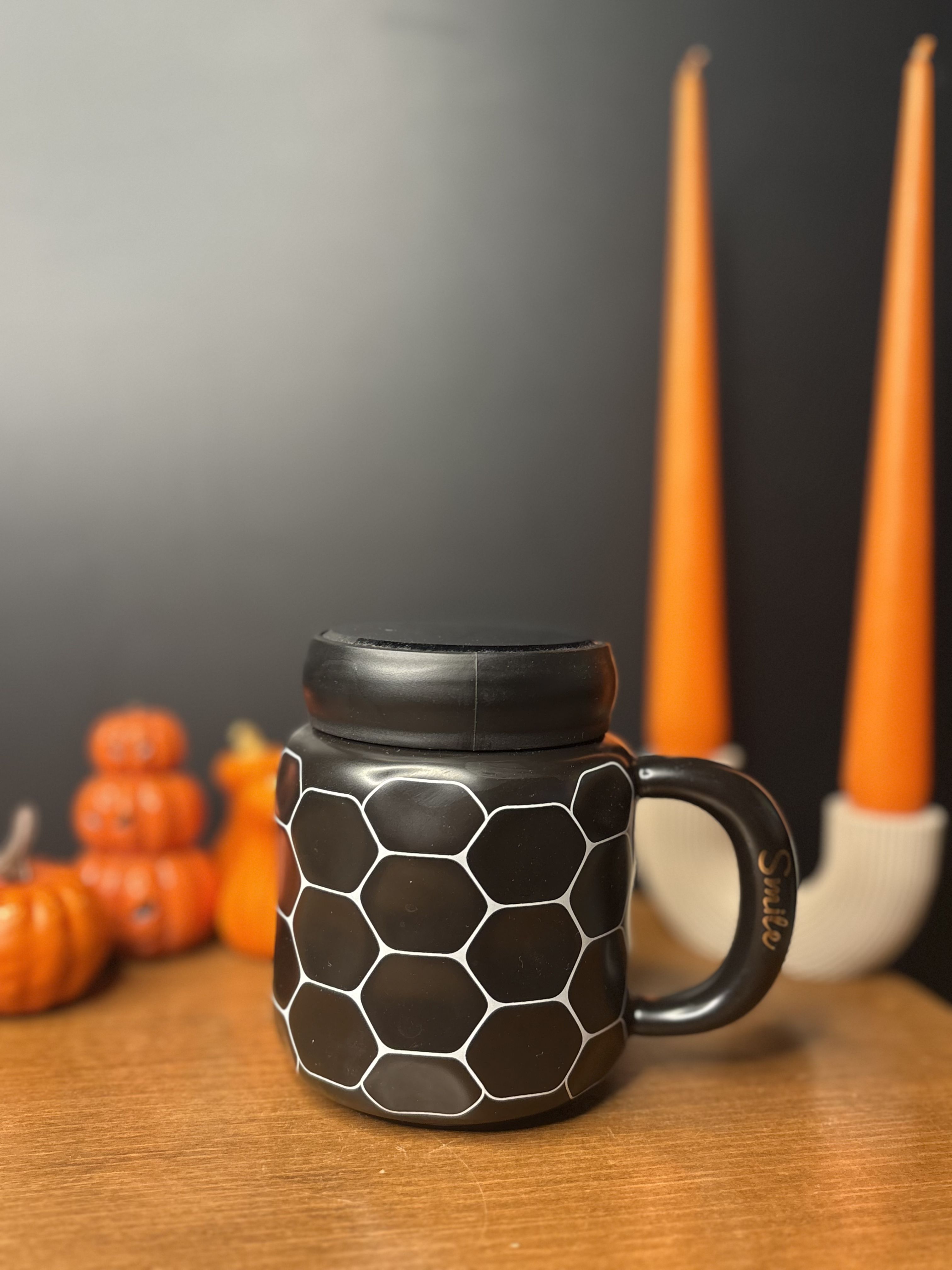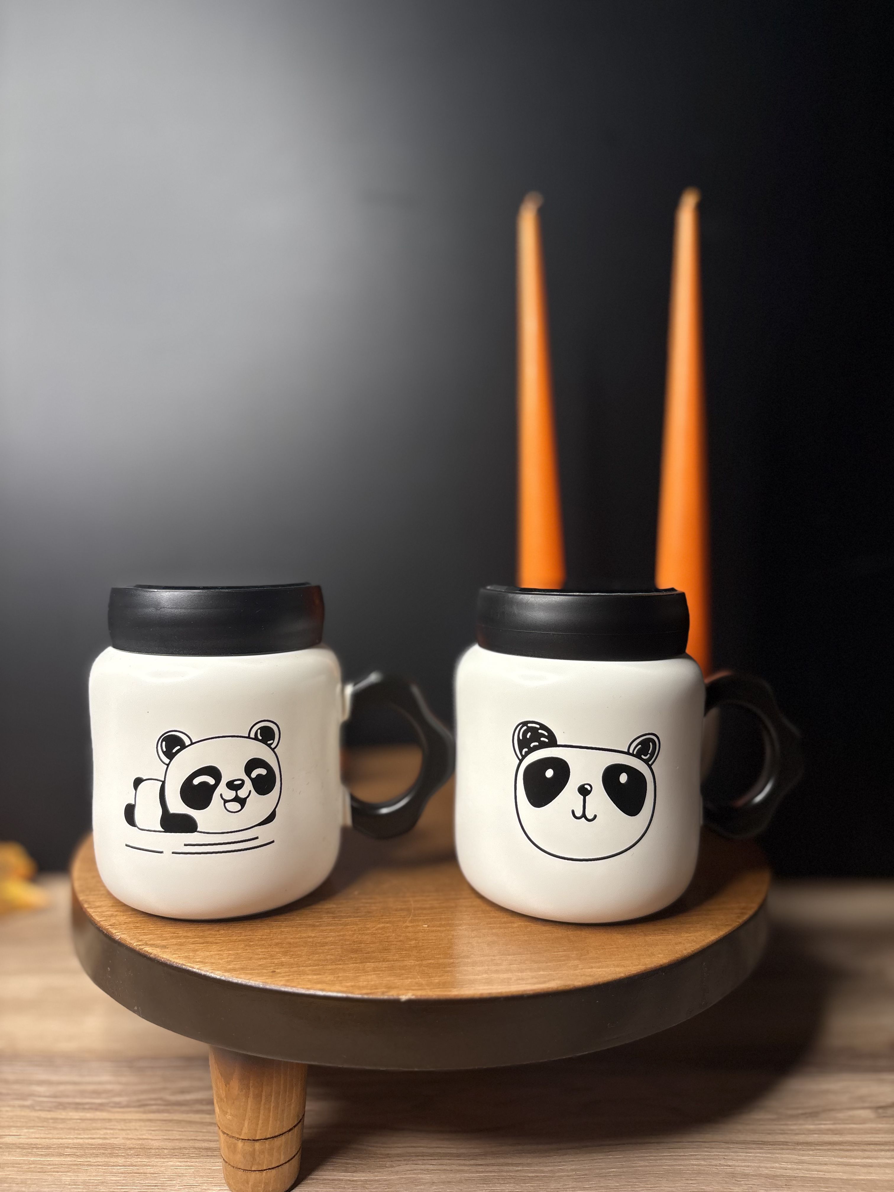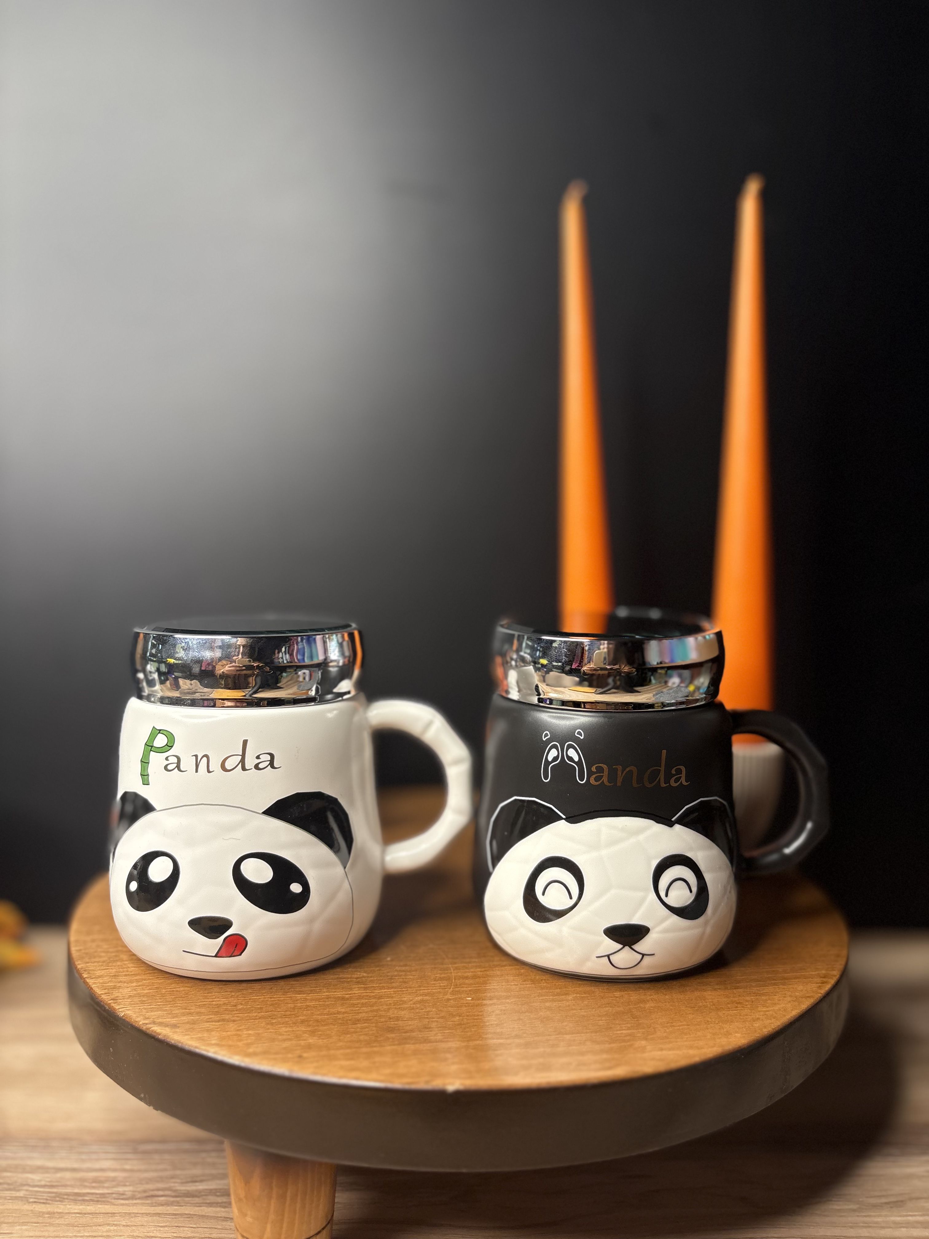 ماگ درب مشکی ایینه پاندا بدنه سفید