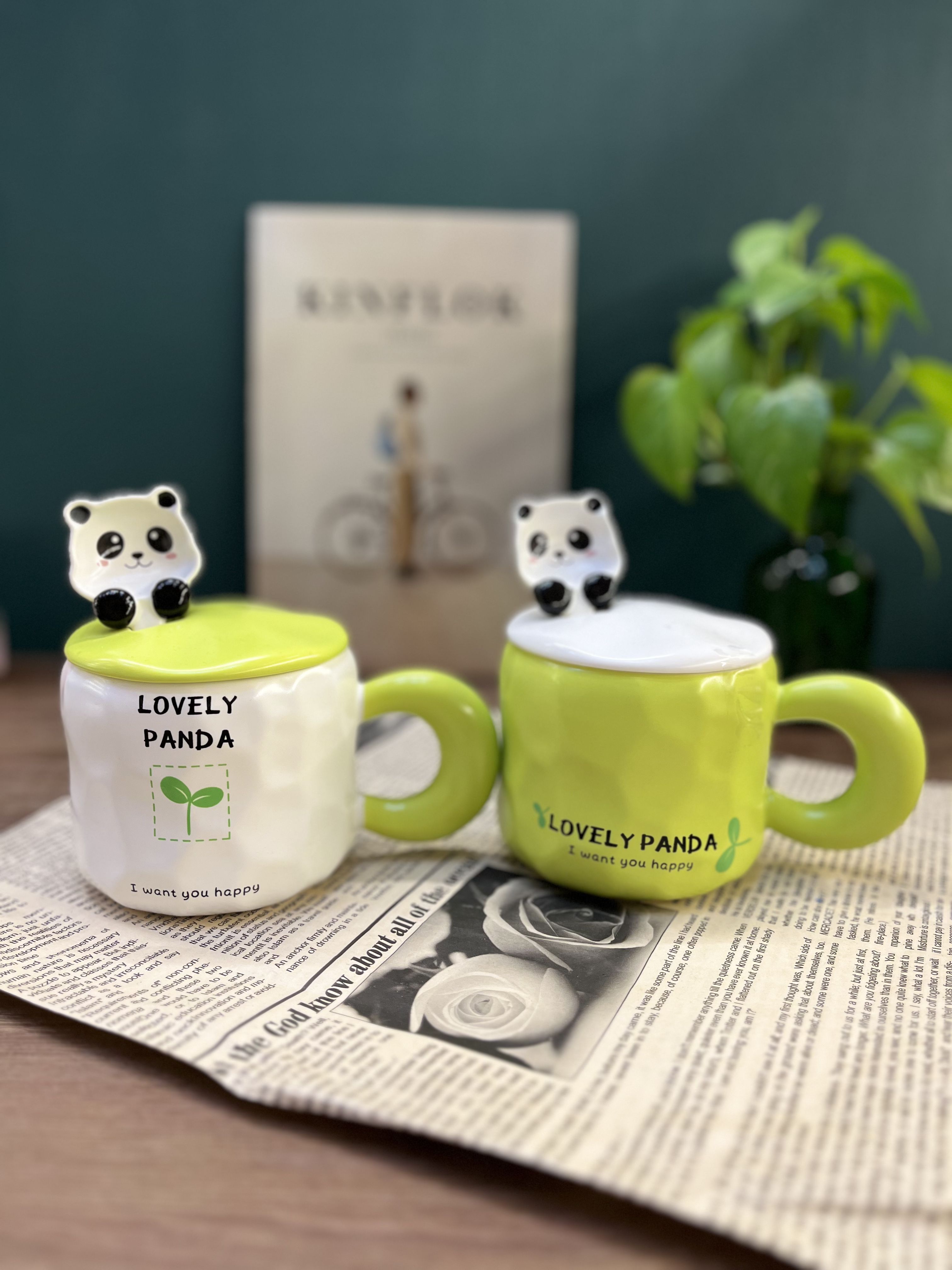 ماگ سبز و سفید قاشق پاندا