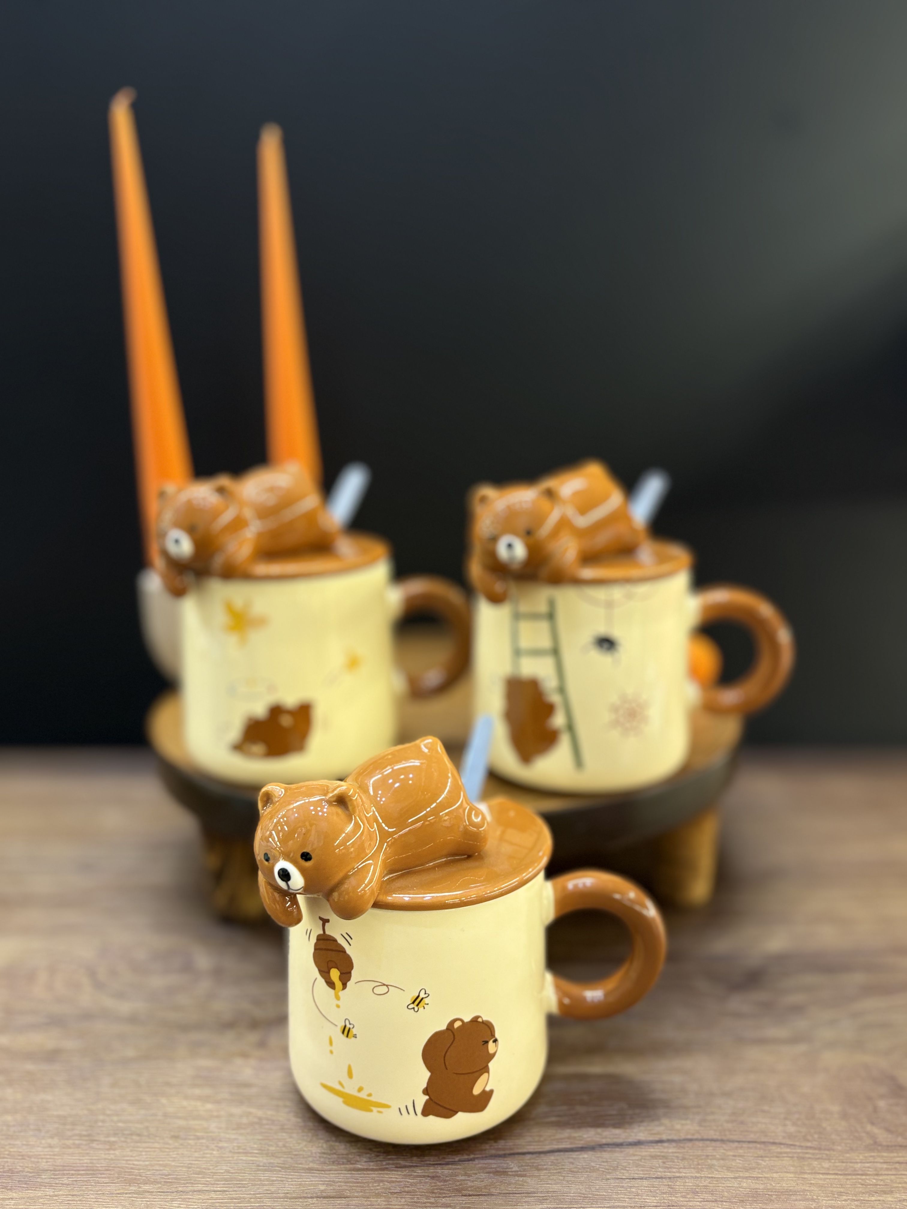 ماگ قهوه ای خرس خابیده روی درب