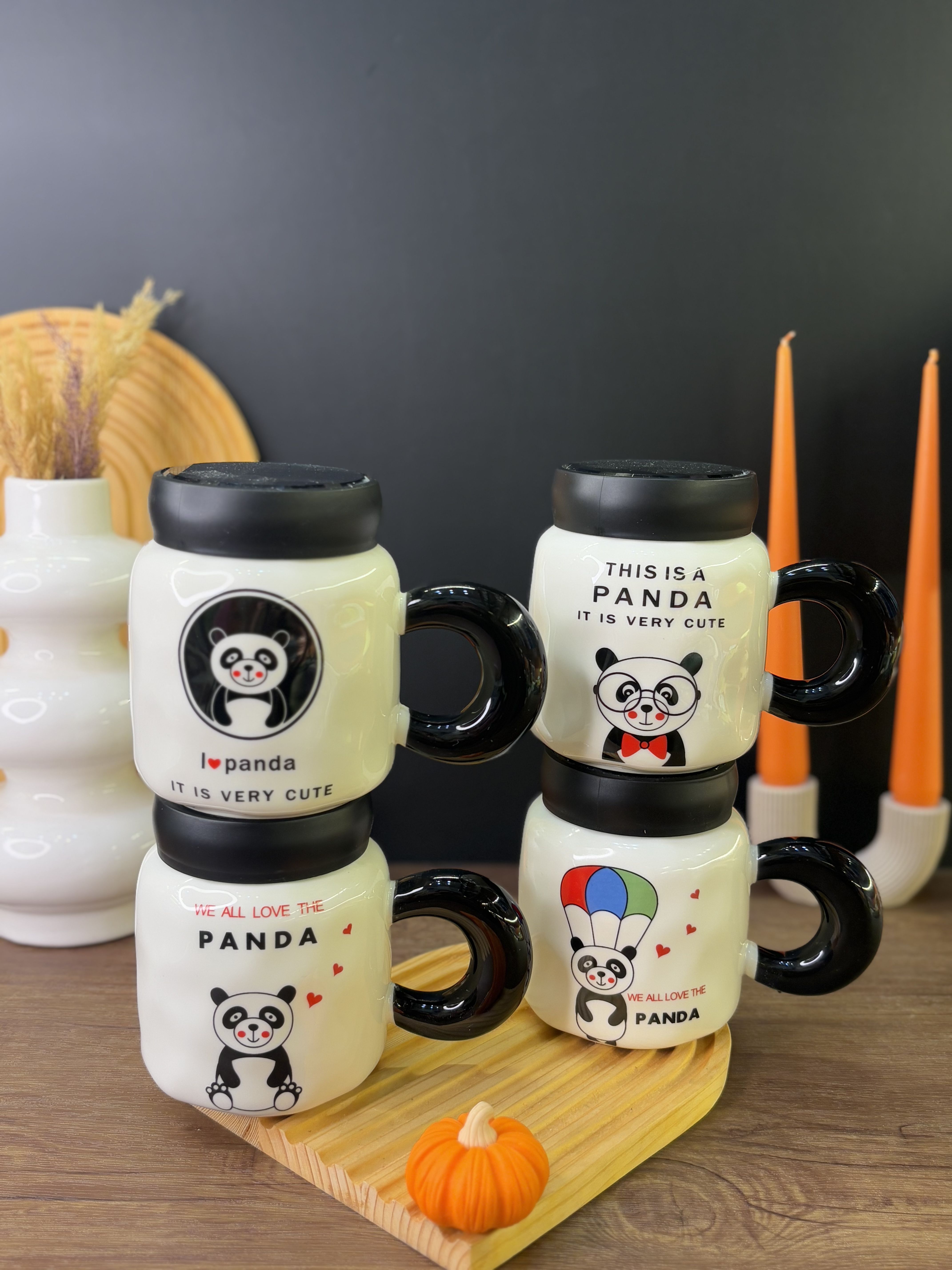 ماگ درب مشکی ایینه پاندا بدنه سفید